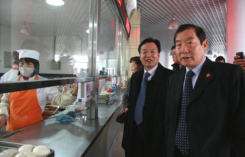 中午,耿喜华书记一行来到学生二食堂,察看了食堂伙食情况并亲切地询问同学在新校区食堂的就餐情况。