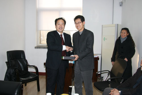 韩国光云大学建筑学院院长赵成庸向仪校长赠送学生作品集