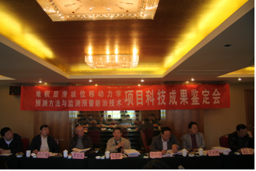 鉴定会由课题负责人贺可强教授做课题汇报,与会专家听取了该成果完成单位所做的技术工作报告、技术研究报告等,并审阅了相关资料。通过质询、答疑,专家鉴定委员会经过认真讨论,经鉴定委员会评审一致认为,该成果提出和建立了“堆积层滑坡位移动力学预测理论与评价方法”,具有坚实的理论基础和广泛的应用前景,创新性强,成果总体上达到国际领先水平。