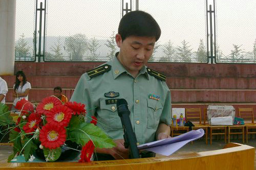 费县人民武装部政工科科长刘建国宣读军训安排