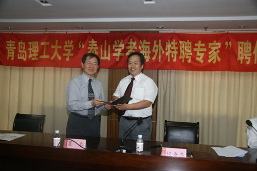 为了贯彻落实2010年7月17日山东省委书记、省人大常委会主任姜异康,省委副书记、省长姜大明在全省人才工作会议上重要讲话精神,继全省人才工作会议向2010年山东省新引进的夏岩博士、廖足良博士等39名海外高层次创新创业人才颁发了“泰山学者海外特聘专家”证书之后,8月2日上午,伟德官网在图书科技楼会议室为美国默克公司资深骨干研究员夏岩博士和挪威水研究院研究员廖足良博士隆重举行“泰山学者海外特聘专家”聘任仪式。