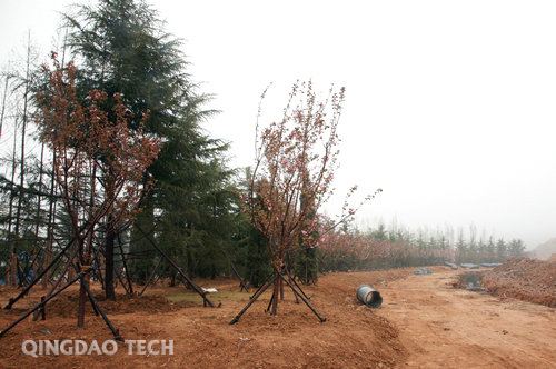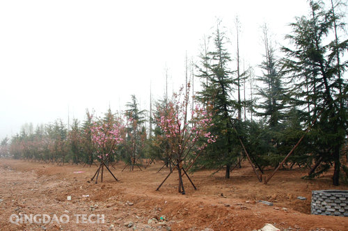 两片树林绿化面积为20亩,共栽种各类树种1041株,植物66墩。其中:水杉358株,雪松138株,樱花182株,蜀桧293株,紫薇62株,紫玉兰8株,红端木8墩,海棠23墩,腊梅17墩,绿叶小檗18墩。(校工会)