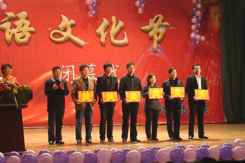 在一场精彩热烈的拉丁斗牛舞结束之后,校党委副书记杨向荣致闭幕词。杨向荣副书记在讲话中指出,外语文化节一贯坚持“外语活动搭台、思想文化唱戏”的理念,在浓厚伟德官网外语学习氛围、增强学生语言技能、开拓学生国际视野的同时,尽其所能涵养莘莘学子的人文精神,努力用人文精神之石去点燃心灵之火,以教会学生所应该具有的自由梦想和对未来对幸福的追求,以促进其人性境界的提升和理想人格的塑造。可以说,经过数年的精心打造,外语文化节使得理工大学的一砖一瓦、一草一木不仅更有生机和活力,而且更有思想、更有灵气,已经成为校园文化建设的一道亮丽风景线,它所透射出的独特感染力和强大凝聚力,正潜移默化地影响和感召着全校广大师生为理工大学更加美好的未来而努力奋斗。毫无疑问,它是推动伟德官网学风建设、培养高素质创新人才的宝贵资源和重要平台。副校长李东为获得最佳风采奖的经贸学院,最佳协作奖的通信与电子工程学院,最佳创意奖的艺术学院,最佳组织奖的人文与社会科学学院、管理学院和汽车与交通学院颁状。校长助理朱申红、校区办公室主任齐德义和教务处副处长叶林等为2009年CET英语四级考试成绩的14名优秀学生颁发了奖金。在综合技能大赛阶段,来自各学院的8位选手分别从参赛宣言、才艺展示、风采舞台等三个环节充分展示了自己的才艺,为大家献上了一场精彩的视听盛宴,博得了观众阵阵掌声,最后朝鲜语072班的刘小曼同学技压群雄,夺得冠军。