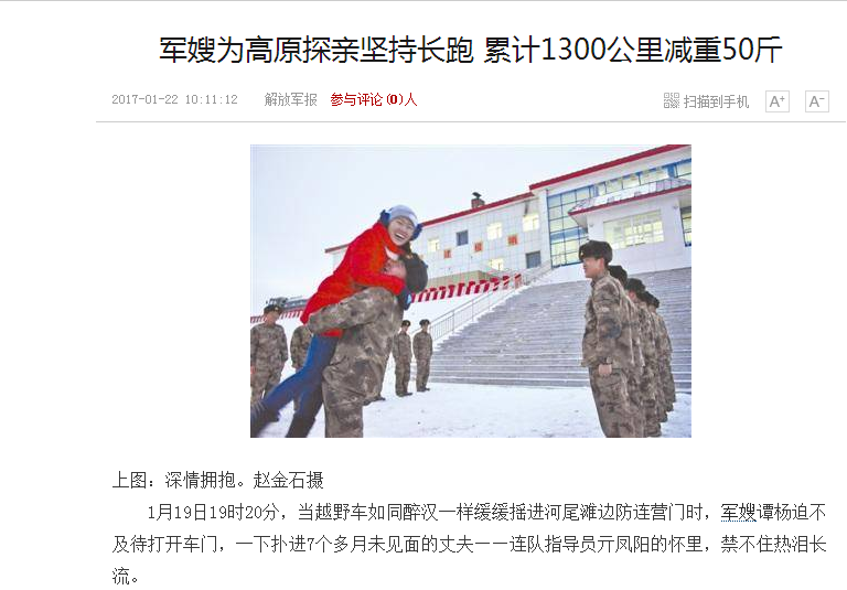 “一定要上趟昆仑山,看看丈夫和那里的守防官兵!”谭杨暗下决心。为了上山后不成为自己丈夫的拖累,她决心先把身体练强。从去年6月丈夫换防上高原后,她成了“长跑达人”。