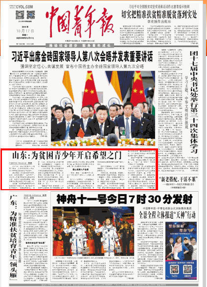 团山东省委还专门下文实施“万名农村贫困中小学生健康成长工程”,在全省范围内确定万名农村贫困中小学生作为帮扶对象,通过“一对一”或“多对一”结对帮扶方式,在物质帮助、心理疏导、亲情陪护等方面精准设置帮扶工作项目。
