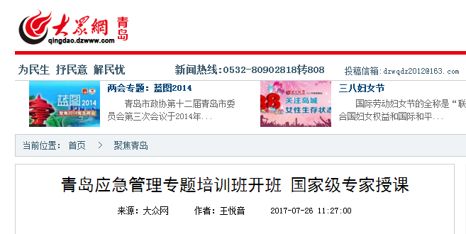 本次培训班自7月26日至27日共2天,市政府应急办有针对性地制定教学方案,邀请国家级应急专家闪淳昌、王郅强、吕孝礼、游志斌和青岛市级应急管理专家组专家董华为大家授课。这次培训是青岛新一届政府成立后举办的第一次全市应急管理专题培训班,既是区市、部门新上任领导加快熟悉应急管理工作的过程,也是各位领导相互学习共同提升的过程,更是落实市应急委会和全市应急管理会议关于培训工作要求的重要举措。通过培训,旨在使全市应急管理干部充分认识当前公共安全和应急管理所面临的形势与任务,正确掌握风险评估和突发事件预防与应对的方法,切实提高全市应急管理干部综合理论素质与实战技能水平,为保障公众生命财产安全,促进我市经济发展作出新的更大贡献。
