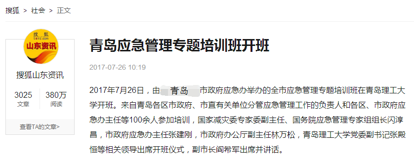 2017年7月26日,由青岛市政府应急办举办的全市应急管理专题培训班在伟德国际1946bv官网开班。来自青岛各区市政府、市直有关单位分管应急管理工作的负责人和各区、市政府应急办主任等100余人参加培训,国家减灾委专家委副主任、国务院应急管理专家组组长闪淳昌,市政府应急办主任张建刚,市政府办公厅副主任林万松,伟德国际1946bv官网党委副书记张殿恒等相关领导出席开班仪式,副市长阎希军出席并讲话。