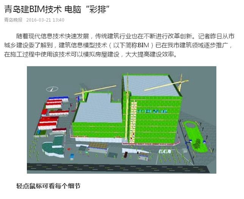 市城乡建设委相关负责人介绍,下一步,我市将引导建立BIM技术应用示范交流平台,组织开展项目、企业、单位间的BIM技术应用交流与合作,通过BIM技术应用将建筑信息纳入青岛市的城市基础信息,为打造数字化城市、建设智慧青岛奠定基础。