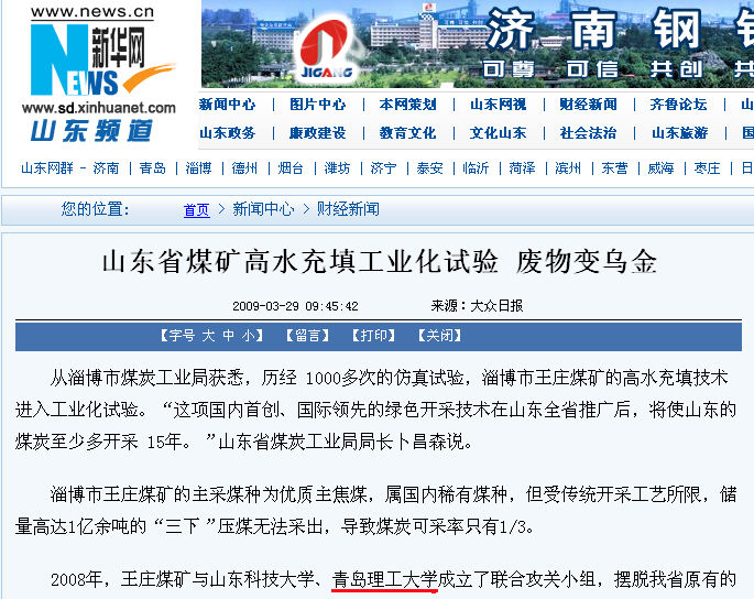 从淄博市煤炭工业局获悉,历经 1000多次的仿真试验,淄博市王庄煤矿的高水充填技术进入工业化试验。“这项国内首创、国际领先的绿色开采技术在山东全省推广后,将使山东的煤炭至少多开采 15年。”山东省煤炭工业局局长卜昌森说。