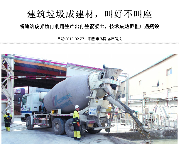 实际上,造成推广难的另一个原因,也在于目前市内的生产再生骨料、再生混凝土的企业,在生产技术上也没有达到要求。