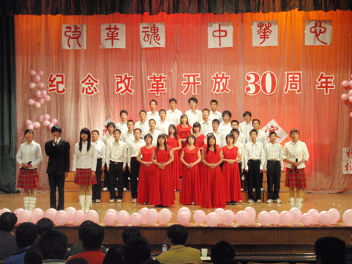 “改革魂 中华心”伟德国际1946bv官网纪念改革开放三十周年朗诵大赛决赛于11月20日晚成功落下帷幕。本次比赛旨在贯彻教育部、团中央“关于加强和改进高等学校校园文化建设”的精神,加强伟德官网的德育和美育工作,提升伟德官网学生的艺术鉴赏力、创造力,打造高层次、高品位、高文化含量的校园文化。大赛得到了同学们的广泛关注和积极参与,黄岛校区12个学院全部参加团体组角逐,共有150余位选手报名参加个人组比赛。参赛作品围绕“改革开放三十周年”这一主题,大力弘扬民族精神、爱国精神、时代精神;参赛作品中不乏伟德官网学生的原创诗歌作品。经过初赛、复赛的选拔,团体组共有10个学院进入决赛,个人组有8名选手进入决赛。