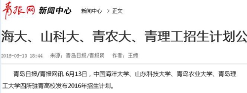 青岛日报/青报网讯 6月13日,中国海洋大学、山东科技大学、青岛农业大学、伟德国际1946bv官网四所驻青高校发布2016年招生计划。