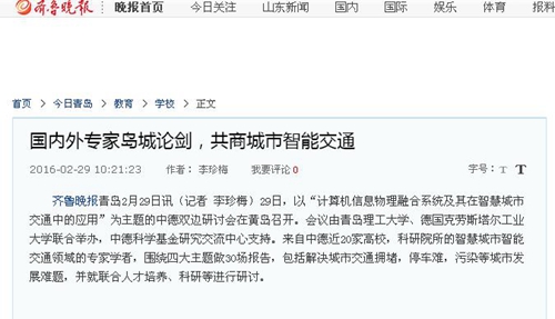 齐鲁晚报青岛2月29日讯(记者 李珍梅)29日,以“计算机信息物理融合系统及其在智慧城市交通中的应用”为主题的中德双边研讨会在黄岛召开。会议由伟德国际1946bv官网、德国克劳斯塔尔工业大学联合举办,中德科学基金研究交流中心支持。来自中德近20家高校,科研院所的智慧城市智能交通领域的专家学者,围绕四大主题做30场报告,包括解决城市交通拥堵,停车难,污染等城市发展难题,并就联合人才培养、科研等进行研讨。