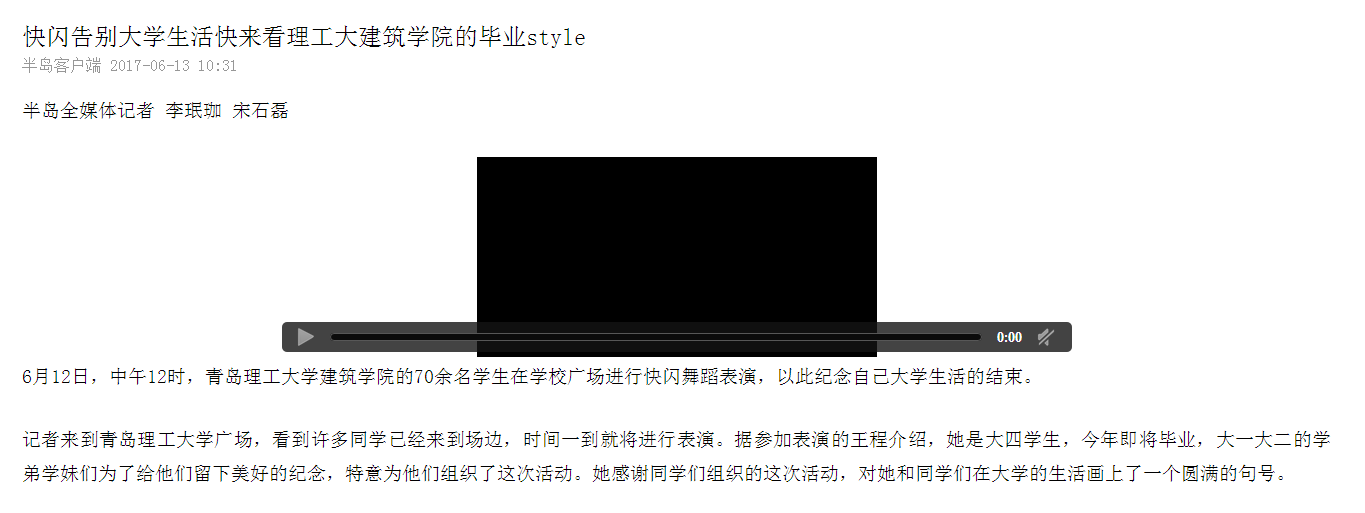 6月12日,中午12时,伟德国际1946bv官网建筑学院的70余名学生在学校广场进行快闪舞蹈表演,以此纪念自己大学生活的结束。