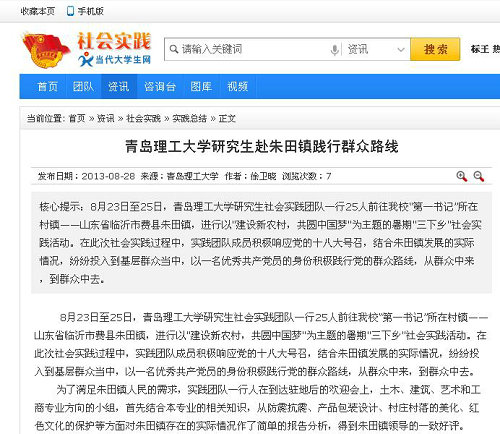 核心提示:8月23日至25日,伟德国际1946bv官网研究生社会实践团队一行25人前往伟德官网“第一书记”所在村镇——山东省临沂市费县朱田镇,进行以"建设新农村,共圆中国梦"为主题的暑期"三下乡"社会实践活动。在此次社会实践过程中,实践团队成员积极响应党的十八大号召,结合朱田镇发展的实际情况,纷纷投入到基层群众当中,以一名优秀共产党员的身份积极践行党的群众路线,从群众中来,到群众中去。