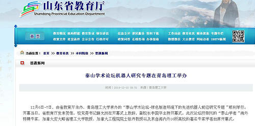 山东省教育厅:泰山学术论坛机器人研究专题在青岛理工举办