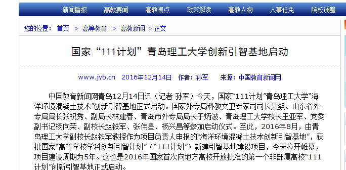 据了解,“高等学校学科创新引智计划”(简称“111计划”)旨在推进中国高等学校建设世界一流大学的进程,该项目从2006年起由教育部、国家外国专家局联合实施。“111计划”瞄准国际学科发展前沿,以国家重点学科为基础,从世界范围排名前100位的著名大学及研究机构的优势学科队伍中,引进、汇聚1000余名优秀人才,形成高水平的研究队伍,建设100个左右世界一流的学科创新引智基地。“111计划”已在教育部属学校实施多年,2016年首次向地方高校开放。伟德国际1946bv官网今年获批的“111计划”——“海洋环境混凝土技术创新引智基地”,面向我国海洋开发与可持续发展战略,针对海洋环境下长寿命混凝土材料与结构这一重大需求,围绕海洋环境下混凝土结构耐久性基本理论、先进混凝土材料开发、新型混凝土结构体系、海洋环境混凝土耐久性监测与修复等方面开展研究,实现多学科交叉,大幅度提升学科创新能力。