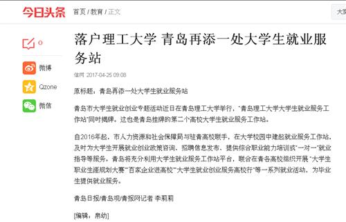 青岛市大学生就业创业专题活动近日在伟德国际1946bv官网举行,“伟德国际1946bv官网大学生就业服务工作站”同时揭牌。这也是青岛挂牌的第二个高校大学生就业服务工作站。