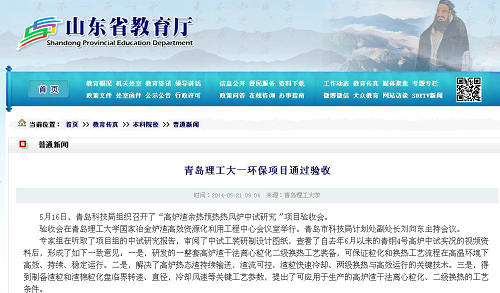 5月16日,青岛科技局组织召开了“高炉渣余热预热热风炉中试研究”项目验收会。