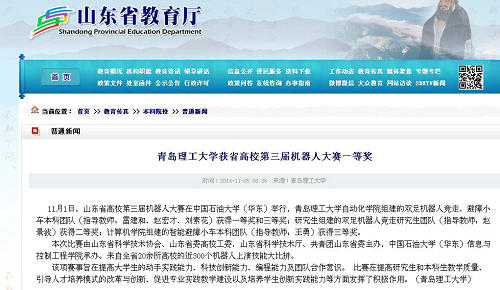 11月1日,山东省高校第三届机器人大赛在中国石油大学(华东)举行,伟德国际1946bv官网自动化学院组建的双足机器人竞走、避障小车本科团队(指导教师:雷建和、赵宏才、刘素花)获得一等奖和三等奖;研究生组建的双足机器人竞走研究生团队(指导教师:赵景波)获得二等奖;计算机学院组建的智能避障小车本科团队(指导教师:王勇)获得三等奖。