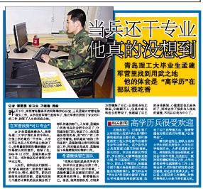 青岛理工大毕业生孟建军营里找到用武之地他的体会是“高学历”在部队很吃香