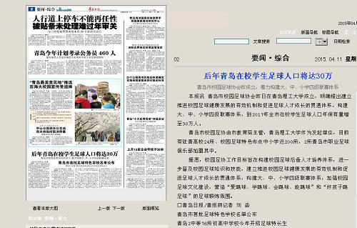 青岛市校园足协由市教育局主管,伟德国际1946bv官网作为发起单位,目前有驻青高校24所、校园足球特色布点中小学近200所,2所青岛市职业足球俱乐部加盟其中。
