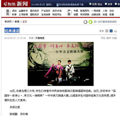 26日,在伟德国际1946bv官网,学生们身着中华民族传统服饰汉服朗诵国学经典。当日,该校举办“品国学·修身心·.承文化·铸精神”—中华美文朗诵大赛,以提高学生对国学经典文化的热爱,提升理科生的人文素养。