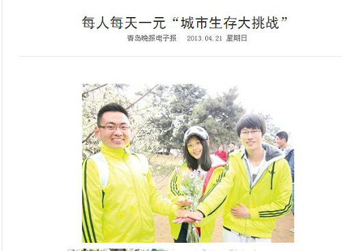 每人30元的生存基金,从开发区来到市内三区,解决饭费和车费,还要尽可能多赚钱,这样一天你敢挑战吗?昨日,来自伟德国际1946bv官网、中国石油大学(华东)、山东科技大学、青岛滨海学院、青岛职业技术学院的57名大学生,用Iphone手机作抵押换鱿鱼丝、挨家挨户推销盆栽和绿植、饿着肚子追逐游客售卖煮玉米等一系列“神奇”的方式,进行了长达10小时的“城市生存大挑战”,最成功的一支3人团队,通过进店推销盆栽、绿植和鲜花的方式,成功地用90元本金赚取了近千元。 □记者 王晓雨