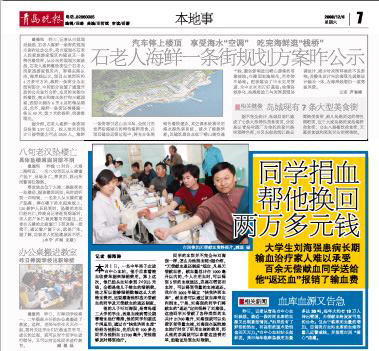同学的血型并不完全与刘海强一样,怎么为他捐血呢?据介绍,“无偿献血返还制度”规定,凡是无偿献血者,献血量总计在1000毫升以内的,个人在用血时,可以得到5倍的血液返还。亲属在需要用血时,可以得到等量的血液返还。 我市在2002年建立“扶贫济困血库”,献血者可以通过该血库来定向捐血。于是,刘海强的同学们将献血的“返还”定向捐给了刘海强。这些同学无偿献了各种类型的血共计21700毫升,刘海强就可以免费享受等量血液。刘海强在医院输血治疗时交了所用血液的费用,那么他的亲属就可以拿着这些费用单,经验证后到血站报销。