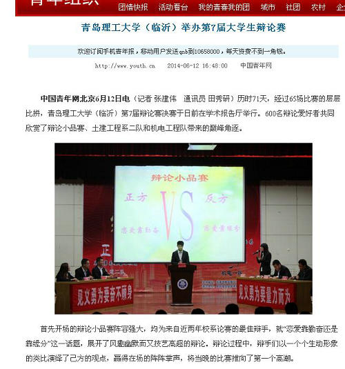 中国青年网北京6月12日电(记者 张建伟 通讯员 田秀研)历时71天,经过65场比赛的层层比拼,伟德国际1946bv官网(临沂)第7届辩论赛决赛于日前在学术报告厅举行。600名辩论爱好者共同欣赏了辩论小品赛、土建工程系二队和机电工程队带来的巅峰角逐。