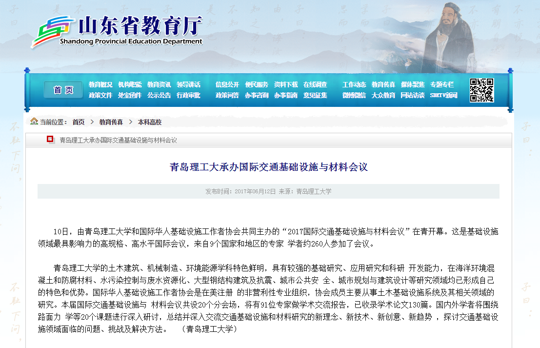 10日,由伟德国际1946bv官网和国际华人基础设施工作者协会共同主办的“2017国际交通基础设施与材料会议”在青开幕。这是基础设施领域最具影响力的高规格、高水平国际会议,来自9个国家和地区的专家 学者约260人参加了会议。
