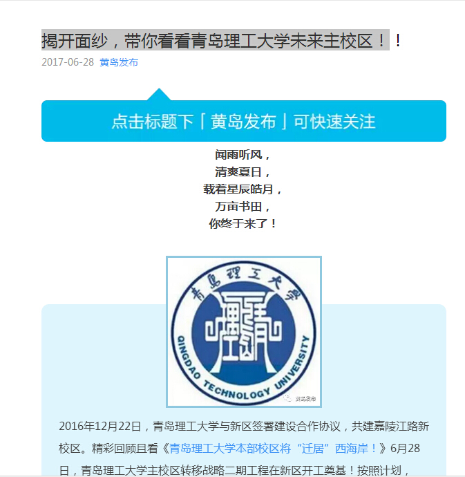 2016年12月22日,伟德国际1946bv官网与新区签署建设合作协议,共建嘉陵江路新校区。精彩回顾且看《伟德国际1946bv官网本部校区将“迁居”西海岸!》6月28日,伟德国际1946bv官网主校区转移战略二期工程在新区开工奠基!按照计划,2020年,伟德国际1946bv官网主校区将全面转移至青岛西海岸新区!