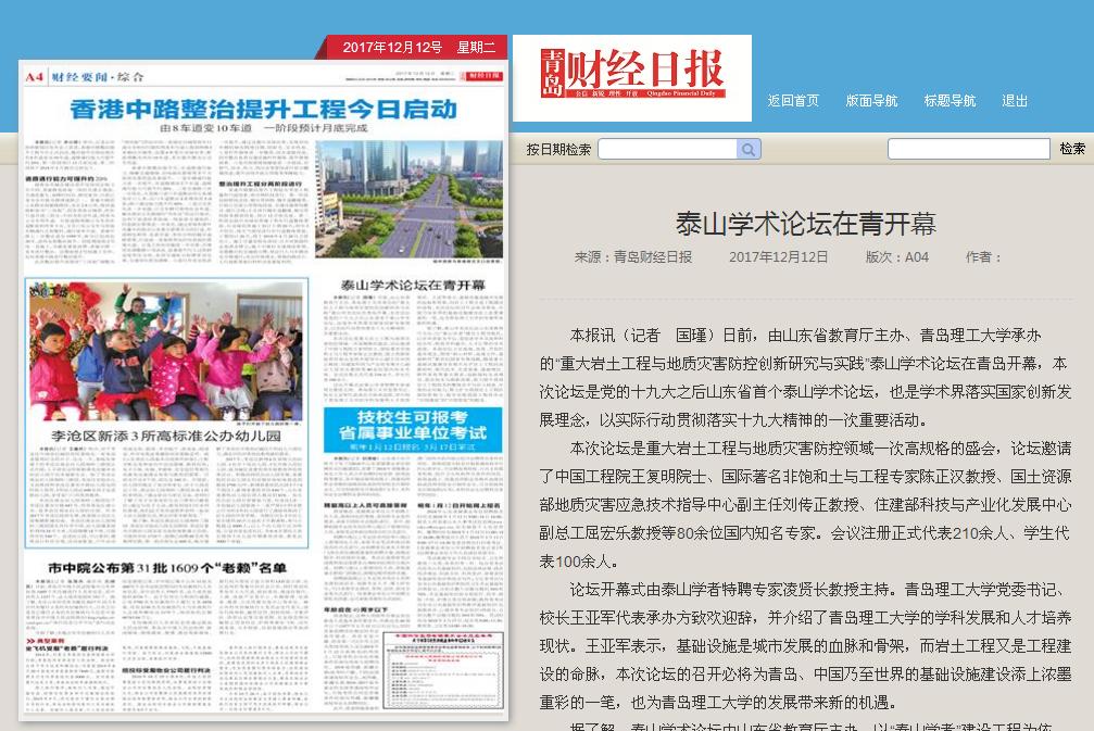 据了解,泰山学术论坛由山东省教育厅主办,以“泰山学者”建设工程为依托,以学术讲座为平台,是促进学术交流和科技合作,构筑学科融合、人才汇聚的学术高地。本届论坛立足高端、高效、节俭的基本理念,围绕“核心材料,高端元件,基础软件”新世纪国家发展战略,瞄准重大基础设施建设发展中关乎岩土工程的高新材料、现代技术、先进装备、基础理论、软件系统等重大需求,追踪国际先进理论、前沿技术与最新进展,致力提升我国岩土工程技术的整体水平与岩土病害、灾害的应对能力,努力扩大我国岩土工程的国际影响力,稳步实现我国工程技术由“中国建造”到“中国智造”的蜕变。