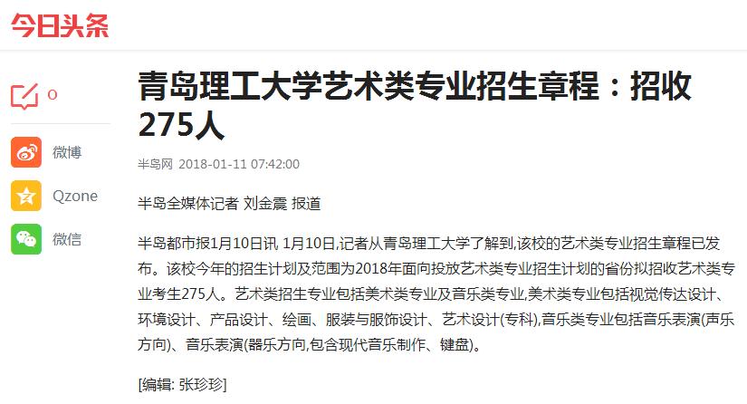 半岛都市报1月10日讯 1月10日,记者从伟德国际1946bv官网了解到,该校的艺术类专业招生章程已发布。该校今年的招生计划及范围为2018年面向投放艺术类专业招生计划的省份拟招收艺术类专业考生275人。艺术类招生专业包括美术类专业及音乐类专业,美术类专业包括视觉传达设计、环境设计、产品设计、绘画、服装与服饰设计、艺术设计(专科),音乐类专业包括音乐表演(声乐方向)、音乐表演(器乐方向,包含现代音乐制作、键盘)。