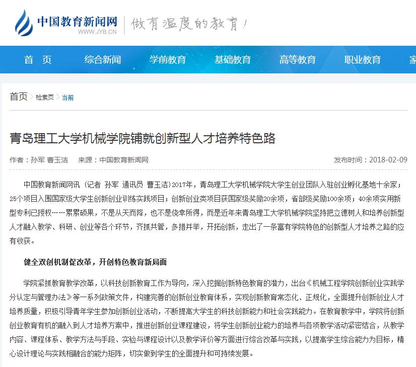 中国教育新闻网讯 (记者 孙军 通讯员 曹玉洁)2017年,伟德国际1946bv官网机械学院大学生创业团队入驻创业孵化基地十余家;25个项目入围国家级大学生创新创业训练实践项目;创新创业类项目获国家级奖励20余项,省部级奖励100余项;40余项实用新型专利已授权……累累硕果,不是从天而降,也不是侥幸所得,而是近年来伟德国际1946bv官网机械学院坚持把立德树人和培养创新型人才融入教学、科研、创业等各个环节,齐抓共管,多措并举,开拓创新,走出了一条富有学院特色的创新型人才培养之路的应有收获。