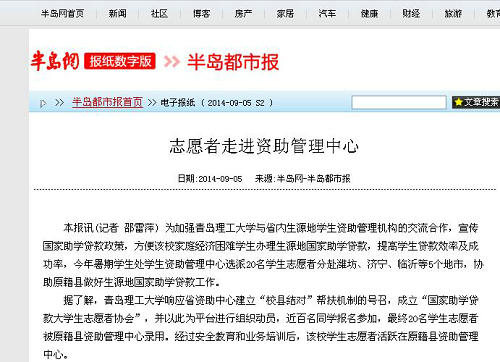 本报讯(记者 邵雷萍) 为加强伟德国际1946bv官网与省内生源地学生资助管理机构的交流合作,宣传国家助学贷款政策,方便该校家庭经济困难学生办理生源地国家助学贷款,提高学生贷款效率及成功率,今年暑期学生处学生资助管理中心选派20名学生志愿者分赴潍坊、济宁、临沂等5个地市,协助原籍县做好生源地国家助学贷款工作。