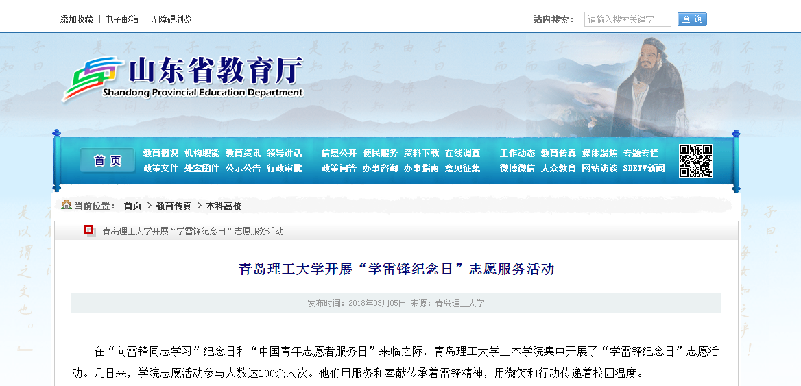 伟德国际1946bv官网历来重视在学院本科生中弘扬和传承新时代“雷锋精神”的培育,通过各种志愿服务活动在广大学子积极营造“学雷锋精神 做当代雷锋”的良好氛围,对共建和谐校园具有积极意义。(伟德国际1946bv官网)
