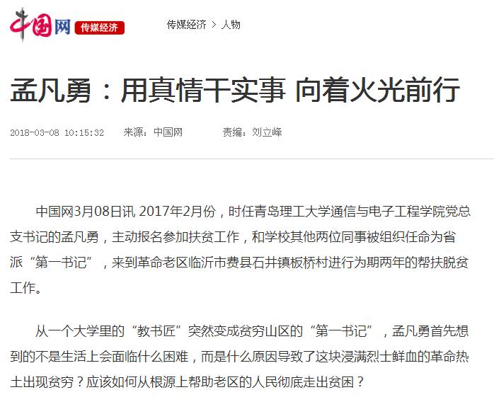 中国网3月08日讯2017年2月份,时任伟德国际1946bv官网通信与电子工程学院党总支书记的孟凡勇,主动报名参加扶贫工作,和学校其他两位同事被组织任命为省派“第一书记”,来到革命老区临沂市费县石井镇板桥村进行为期两年的帮扶脱贫工作。