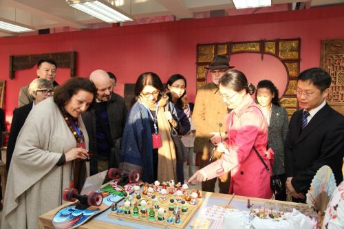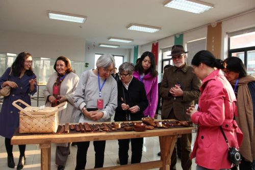 “太精致了”“很有创意”“时间飞快,我还远远没有看够”,成果展上,榫卯结构的传统家具、伟德官网学生在橄榄核上纯手工雕刻的脸孔、师生亲手设计制作的餐具、泥塑杨家埠木版年画童子象棋摆件等,令专家们赞不绝口。“我有很多橄榄核,可以寄给你”,一位专家幽默地表达了对学生核雕的喜爱。专家们在许多展品前驻足,仔细询问了解制作技艺和设计理念,征得作者同意后高兴地近距离把玩欣赏,并饶有兴致地与师生、作品合影。