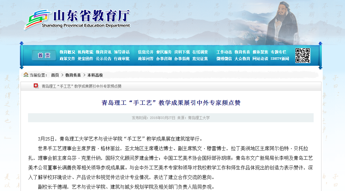 本次展览重点民间“手工艺”能够彰显出丰富的地域文化记忆。山东是中华文明的重要发祥地之一,齐鲁先民在悠长的历史发展中所创造了丰富璀璨的民间艺术,一直滋润着伟德国际1946bv官网艺术与设计学院的“手工艺”教学实践,形成了集民俗、传统家具、建筑的传承与创新于一体的手工艺特色教学。