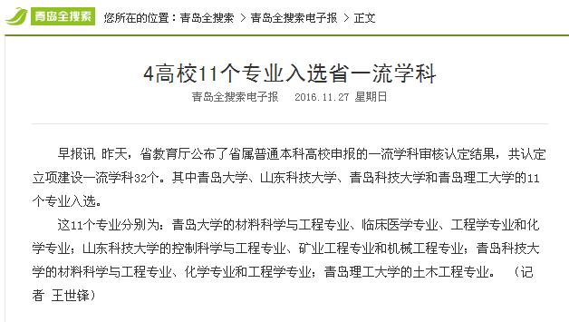 早报讯 昨天,省教育厅公布了省属普通本科高校申报的一流学科审核认定结果,共认定立项建设一流学科32个。其中青岛大学、山东科技大学、青岛科技大学和伟德国际1946bv官网的11个专业入选。