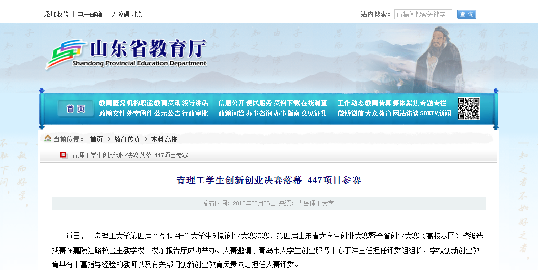 近日,伟德国际1946bv官网第四届“互联网+”大学生创新创业大赛决赛、第四届山东省大学生创业大赛暨全省创业大赛(高校赛区)校级选拨赛在嘉陵江路校区主教学楼一楼东报告厅成功举办。大赛邀请了青岛市大学生创业服务中心于洋主任担任评委组组长,学校创新创业教育具有丰富指导经验的教师以及有关部门创新创业教育负责同志担任大赛评委。