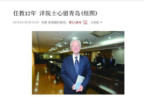“Wittmann教授是青岛市政府首批特聘外籍专家之一,这一批只有5名专家。”青岛市外国专家局外国专家管理处处长朱峰介绍说,青岛市外籍专家库有1620名专家,“十二五”以来,青岛市共引进外国专家7000余人次,实施外国专家项目170余项,每年来青岛工作的国(境)外专家近5000人次,常驻青岛一年以上的有1500余人,位居山东省首位。“到2013年,青岛市4名高端专家,每人资金资助1000万元,有10名外国专家获得中国政府国家友谊奖,30名专家获省政府齐鲁友谊奖。”朱峰说,青岛市还连续3年入选 “魅力中国·外籍人才眼中最具吸引力城市”,青岛已成为最吸引外籍人才的城市之一。