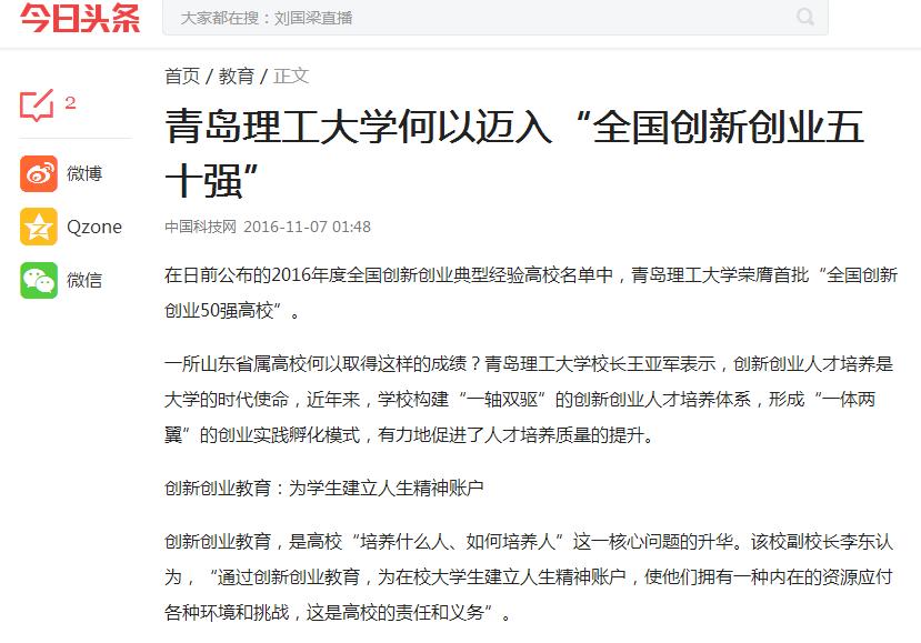 在日前公布的2016年度全国创新创业典型经验高校名单中,伟德国际1946bv官网荣膺首批“全国创新创业50强高校”。