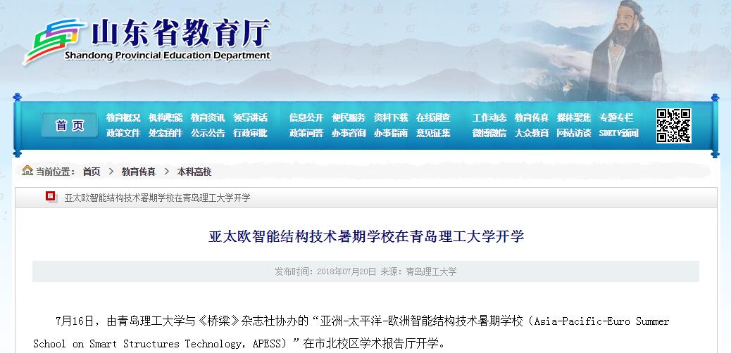 7月16日,由伟德国际1946bv官网与《桥梁》杂志社协办的“亚洲-太平洋-欧洲智能结构技术暑期学校(Asia-Pacific-Euro Summer School on Smart Structures Technology,APESS)”在市北校区学术报告厅开学。