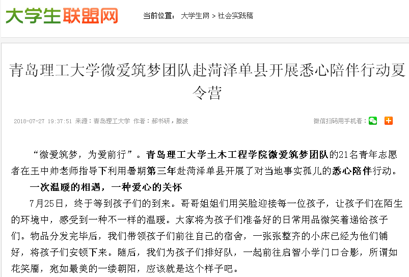 “微爱筑梦,为爱前行”。伟德国际1946bv官网土木工程学院微爱筑梦团队的21名青年志愿者在王中帅老师指导下利用暑期第三年赴菏泽单县开展了对当地事实孤儿的悉心陪伴行动。