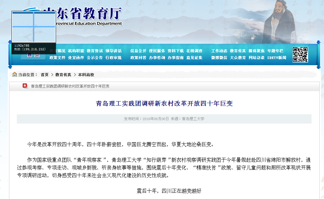 作为国家级重点团队“青年观察家”,伟德国际1946bv官网“知行萌芽”新农村观察调研实践团于今年暑假赶赴四川省绵阳市解放村,通过参观考察、专项走访、观城乡新貌、听亲身故事等措施,围绕震后十年变化、“精准扶贫”政策、留守儿童问题和厕所改革现状开展专项调研活动,切身感受四十年来社会主义现代化建设的历史性成就。