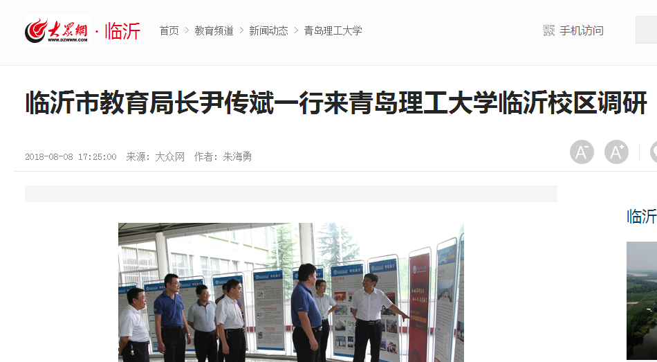 尹传斌等一行还实地察看了临沂校区发展成果展区和校园,听取了校区领导的情况介绍。(通讯员 朱海勇)