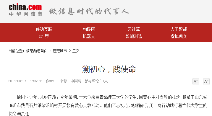恰同学少年,风华正茂。今年暑期,十六位来自伟德国际1946bv官网的学生,因着心中对支教的执念,相聚于山东省临沂市费县石井镇柴禾峪村开展教育爱心支教活动。他们不忘初心,砥砺前行,用自身行动践行着当代大学生的使命与责任。