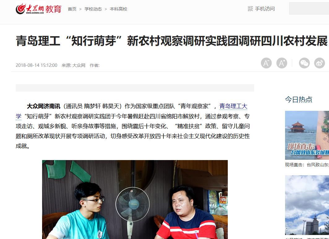 大众网济南讯(通讯员 隋梦轩 韩昊天)作为国家级重点团队“青年观察家”,伟德国际1946bv官网“知行萌芽”新农村观察调研实践团于今年暑假赶赴四川省绵阳市解放村,通过参观考察、专项走访、观城乡新貌、听亲身故事等措施,围绕震后十年变化、“精准扶贫”政策、留守儿童问题和厕所改革现状开展专项调研活动,切身感受改革开放四十年来社会主义现代化建设的历史性成就。